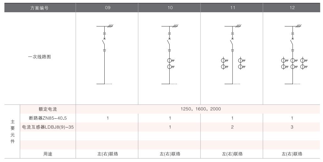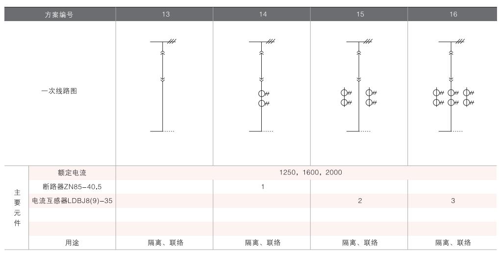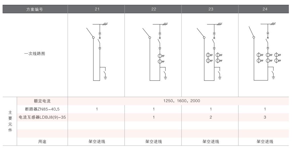 開關柜的一次接線方案有27個常用典型方案,能滿足用戶電纜進出線、架空進出線,聯絡級測量、保護等的需要,若有不同與現有方案的其他方案的需要,請與廠方協商。