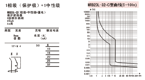 MRB20-32小型斷路器主要用于交流50Hz或60Hz,額定電壓230V,額定電流至32A的線路中過載、短路保護,同時也可以在正常情況下作為線路的不頻繁轉換之用,尤其適用于工業和商業的照明配電系統。