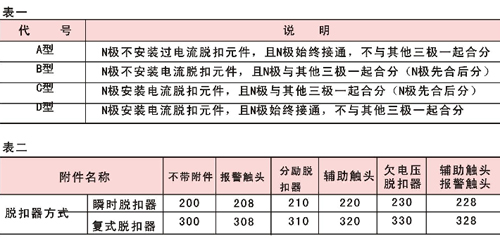 訂貨時必須寫明:產品名稱、型號、規格、極數、脫扣方式及附件名稱、保護特性、額定電流、額定剩余動作電流,訂貨數量。
