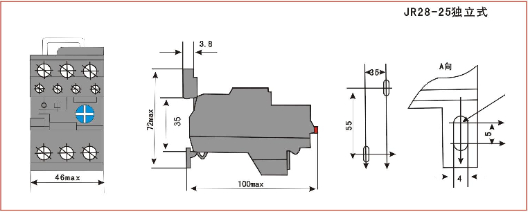 安裝方式:與接觸器插入安裝或獨立安裝。