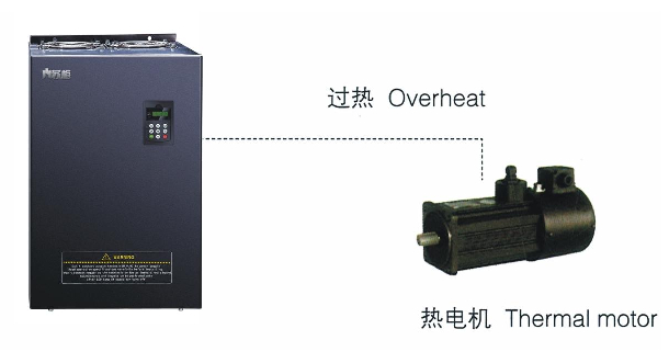選用輸入輸出擴(kuò)展卡,模擬量輸入A13可接受電機(jī)溫度傳感器輸入(PTlOO,PTlOOO)。當(dāng)電機(jī)溫度越過預(yù)警值時(shí),變頻器輸出脈沖信號(hào)提示過熱,當(dāng)電機(jī)溫度超過過熱保護(hù)值時(shí),變頻器故障輸出給電機(jī)妥善的保護(hù)。
