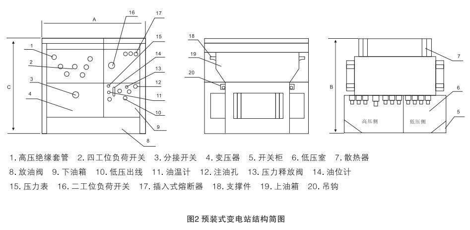 YB27系列預裝式變電站,適用于10kV環網供電、雙電源供電或終端供電系統中,作為變電、配電、計量、補償、控制和保護裝置。預裝式變電站內除裝有變壓器外,高壓側還裝有四工位負荷開關、二工位負荷開關、后備保護熔斷器及插入式熔斷器;低壓側按用戶要求可裝控制電器、配電電器、補償裝置及計量表計等,以變壓器油作為絕緣和來弧介質。